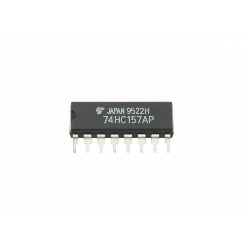 آیسی 74HC157AP یک Multiplexer چهار کاناله 2‑به‑1 (4× 2‑to‑1 MUX) از سری High‑Speed CMOS (HC) است. این نسخه معمولاً ساخت Toshiba است (حرف A و P نشانهٔ ورژن و پکیج DIP‑16 هستند).