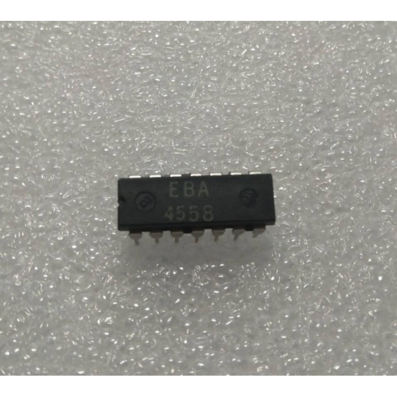 4558 یک IC یکپارچه (monolithic) است که روی یک چیپ سیلیکونی دو تقویتکننده عملیاتی مستقل دارد.