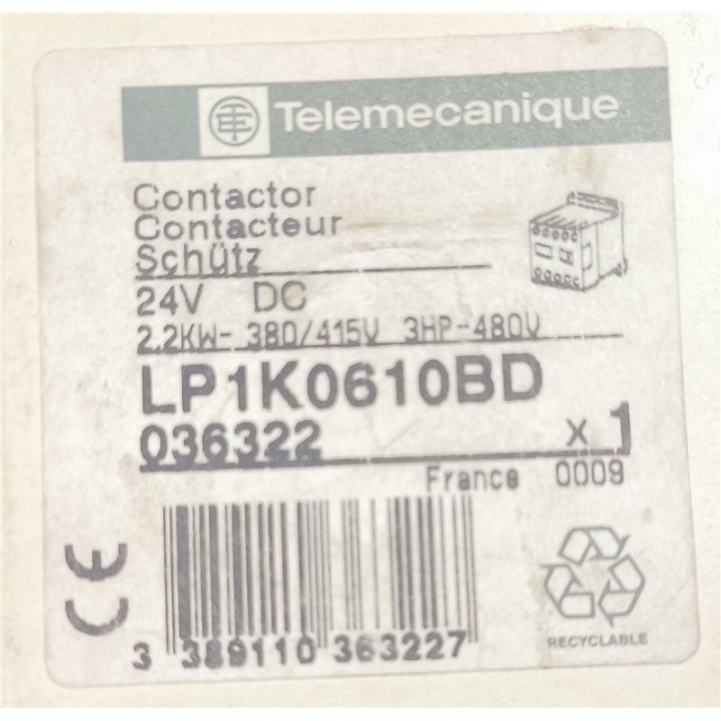 قطعه LP1K0610BD یک کنتاکتور سه فاز 6 آمپر 440VAC با بوبین 24VDC می باشد.