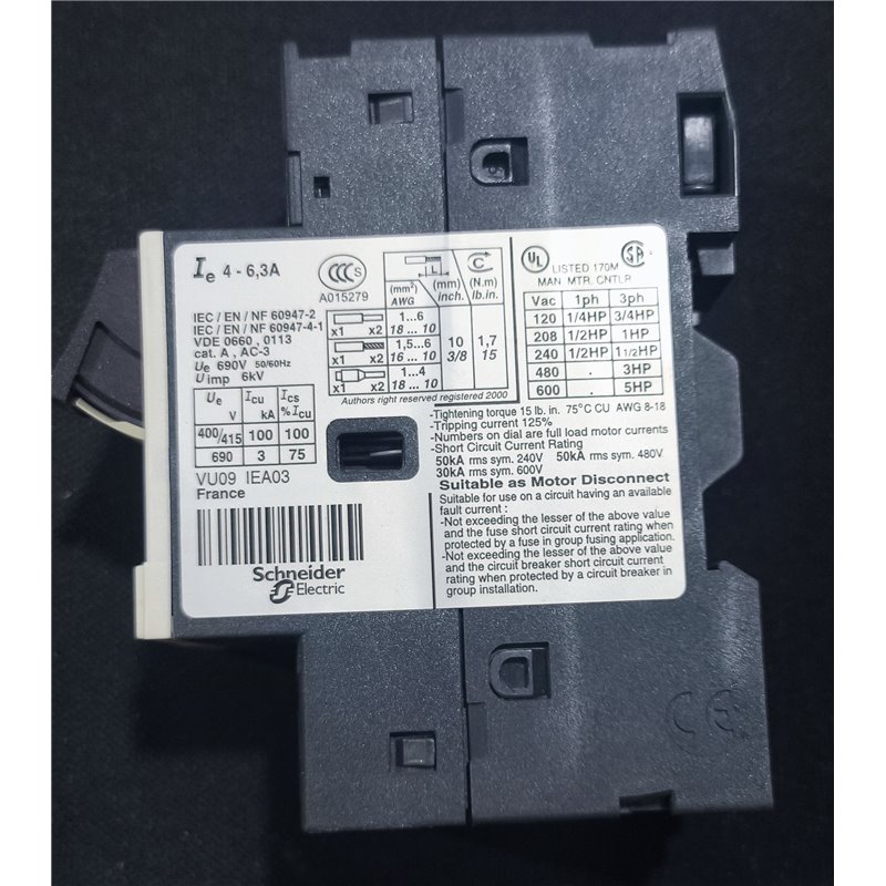 قطعه GV2ME10 یک Motor circuit breaker سه فاز 4-6.3A آمپر 2.2Kw می باشد.